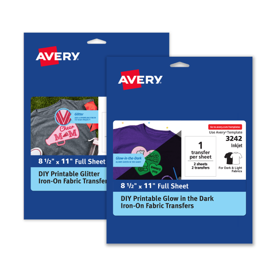 avery light fabric transfers are designed for white or light coloured 100% cotton or poly/cotton blend fabrics. avery light fabric transfers are designed for white or light colored 100% cotton or poly/cotton blend fabrics. now you can add the design you want to shirts, sweatshirts, tote bags and more with avery fabric transfers. avery fabric transfers are guaranteed to look good after 20 washes, when applied and washed according to instructions.